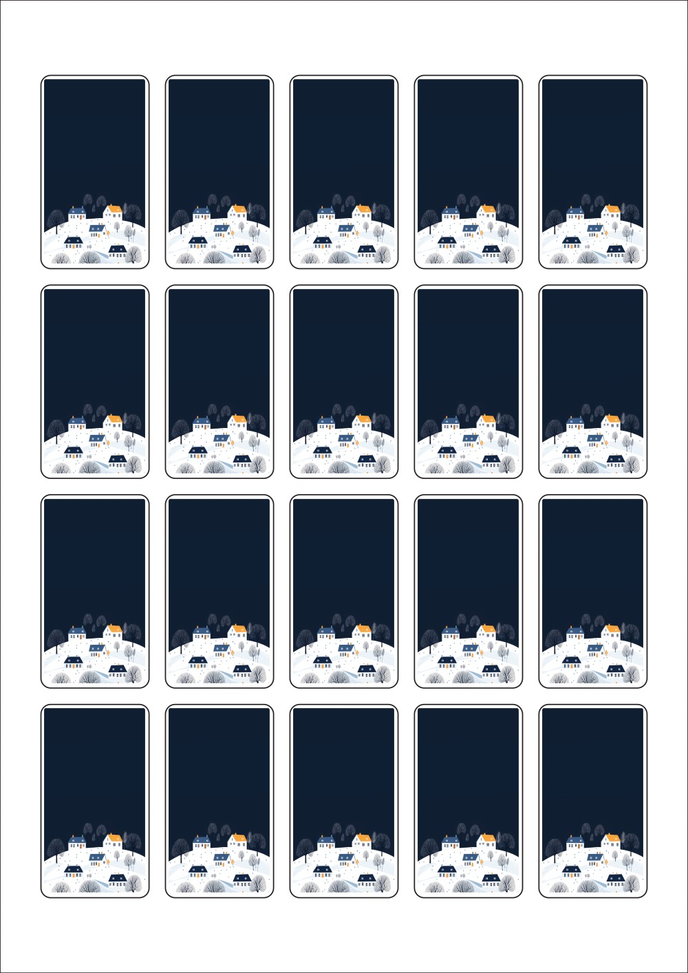 디자인된 A4 라벨지 출력용 라벨스티커, 규격코드: 654, 디자인코드: DA1483(Slient Night Holy Noght), 33 x 59 (mm)