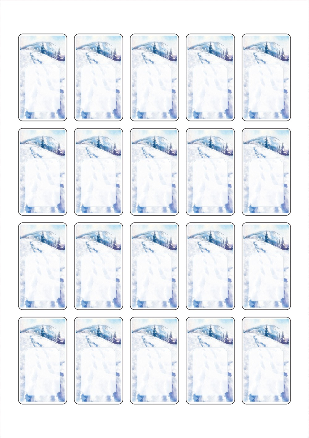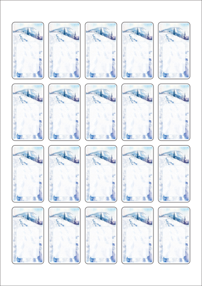 디자인된 A4 라벨지 출력용 라벨스티커, 규격코드: 654, 디자인코드: DA1491(겨울산에서 보내는 편지 2), 33 x 59 (mm)