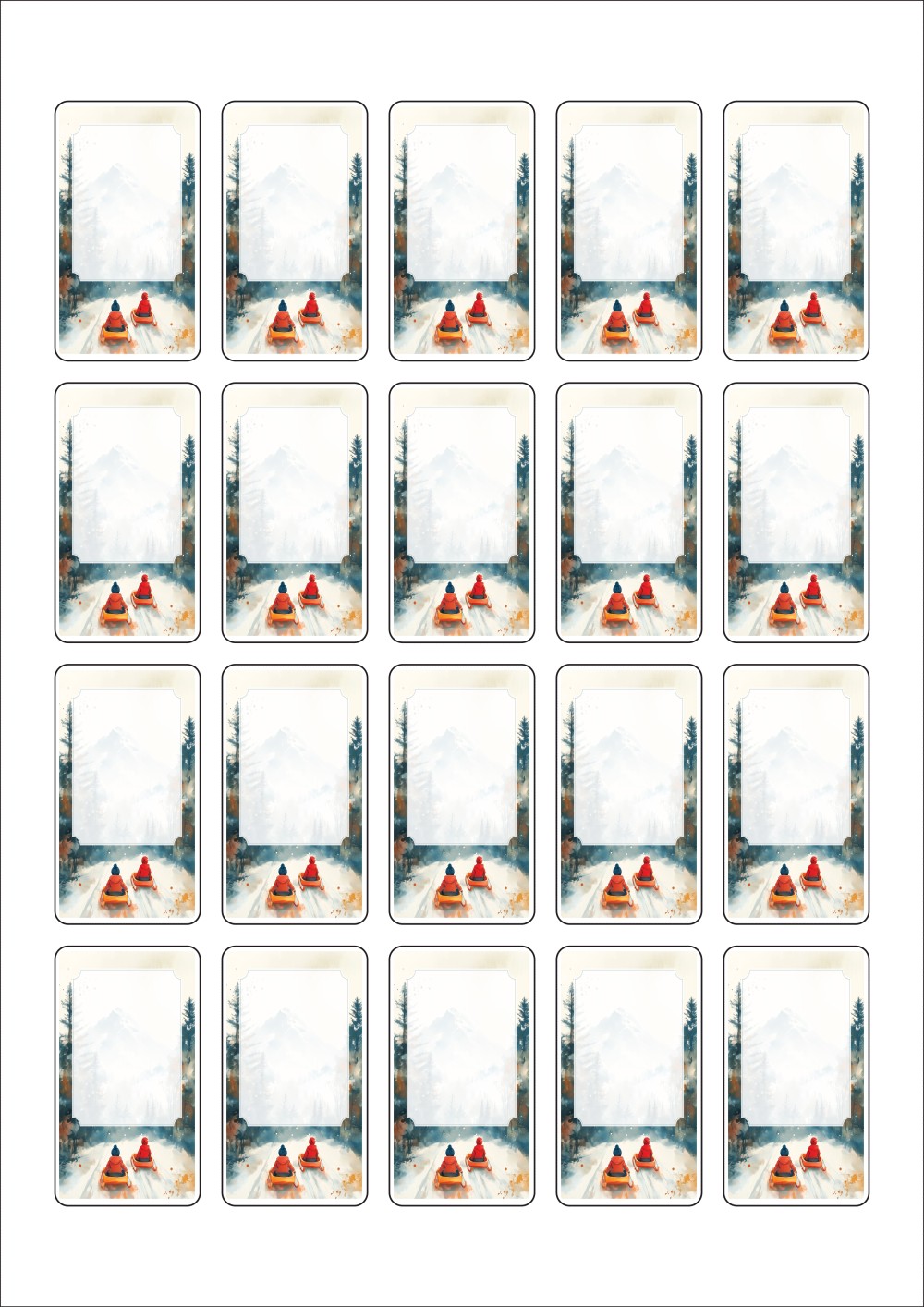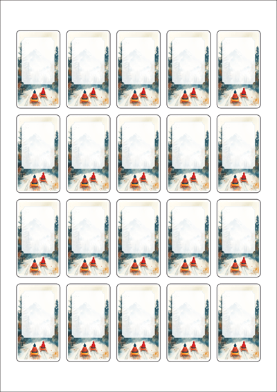 디자인된 A4 라벨지 출력용 라벨스티커, 규격코드: 654, 디자인코드: DA1495(겨울날의 동화, 그리고 즐거운 추억), 33 x 59 (mm)