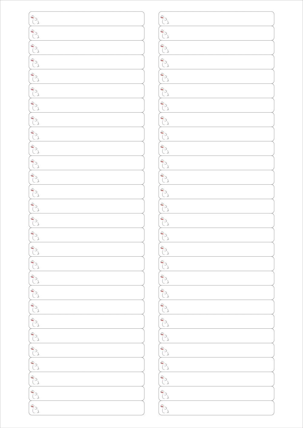 디자인된 A4 라벨지 출력용 라벨스티커, 규격코드: 656, 디자인코드: DX026(하이 ~ 토끼씨.), 80 x 10 (mm)