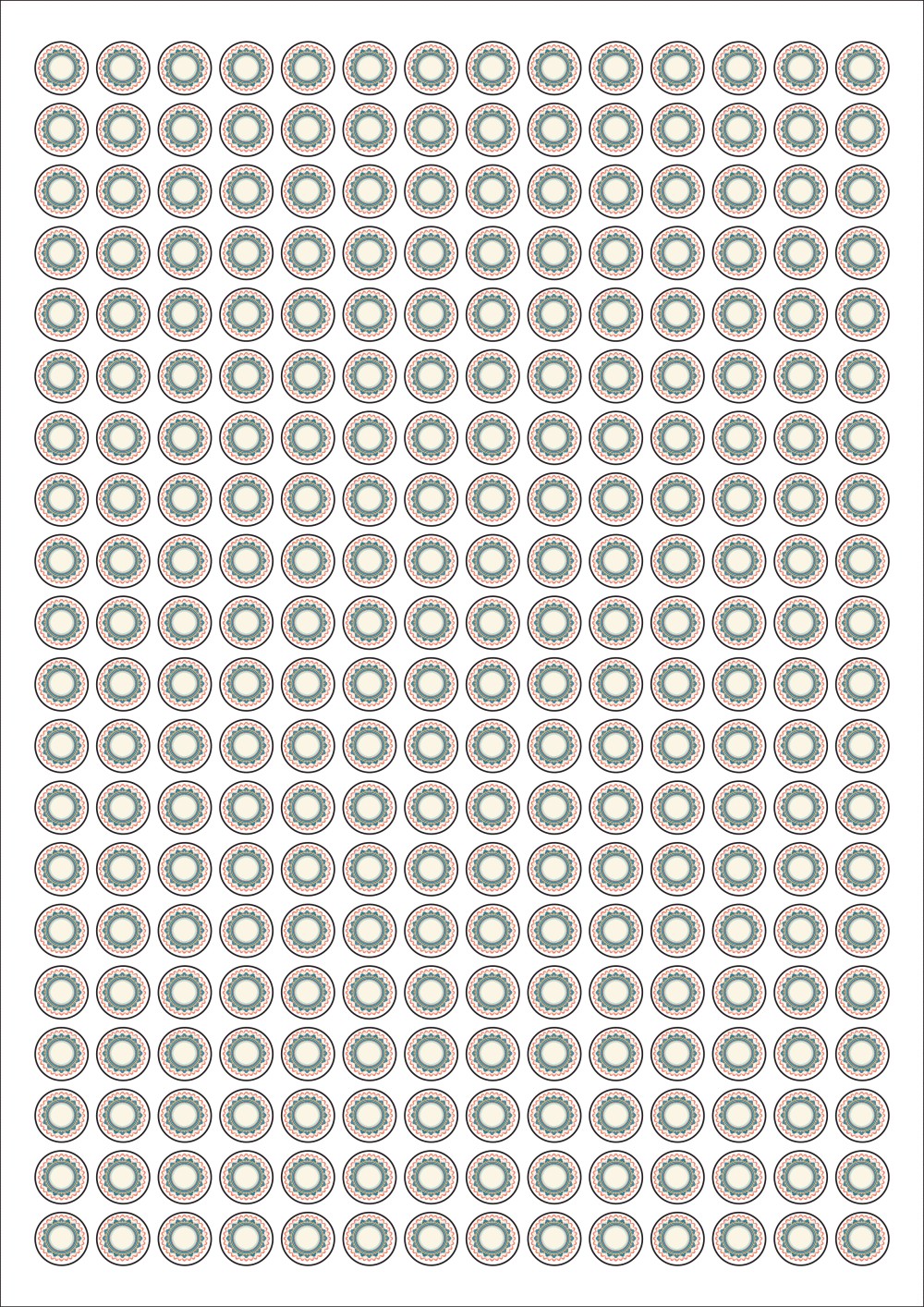 디자인된 A4 라벨지 출력용 라벨스티커, 규격코드: 680, 디자인코드: DA1418(단청 받침), Φ12 (mm) 원형