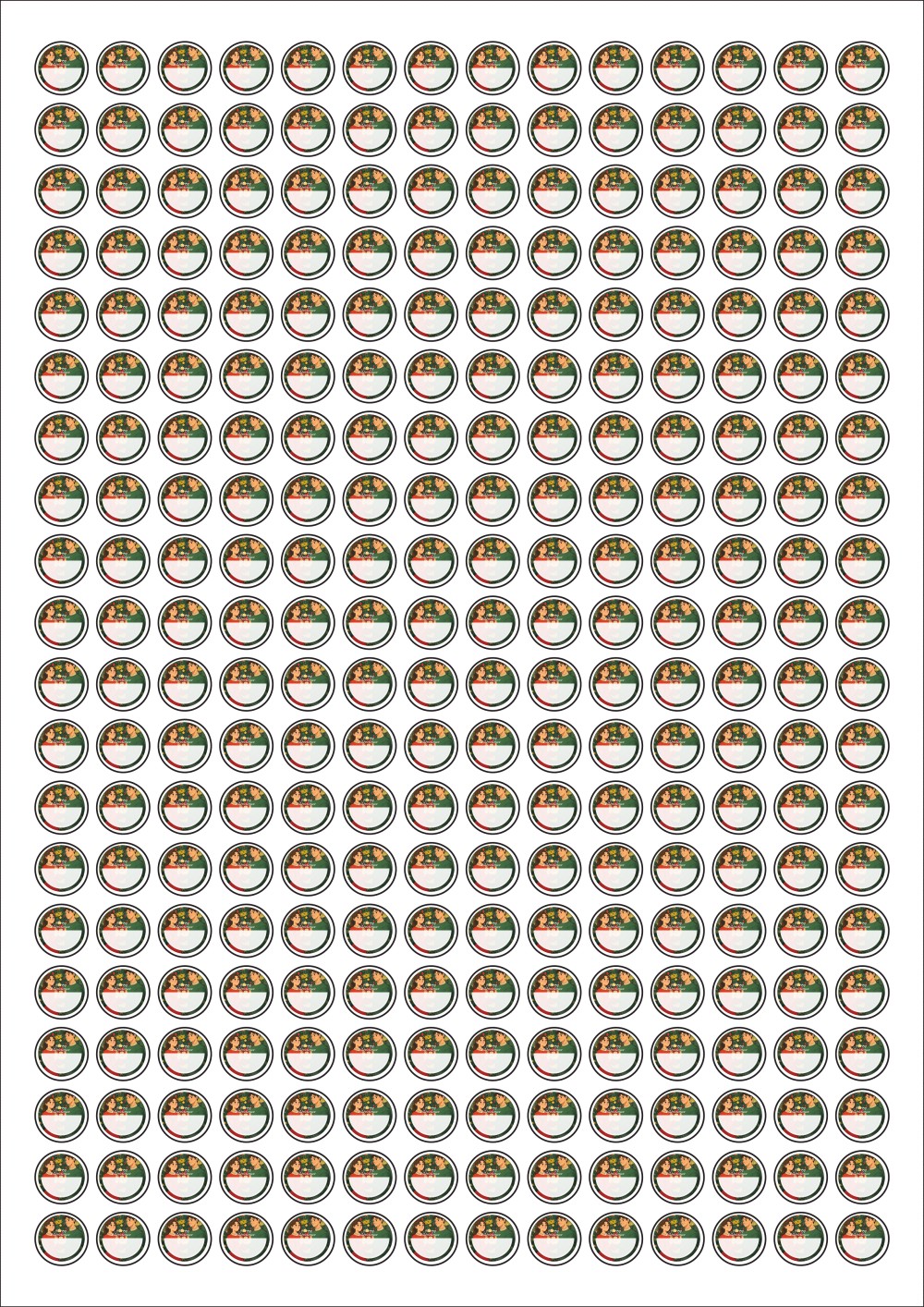 디자인된 A4 라벨지 출력용 라벨스티커, 규격코드: 680, 디자인코드: DA1502(두근두근 선물교환 타임), Φ12 (mm) 원형