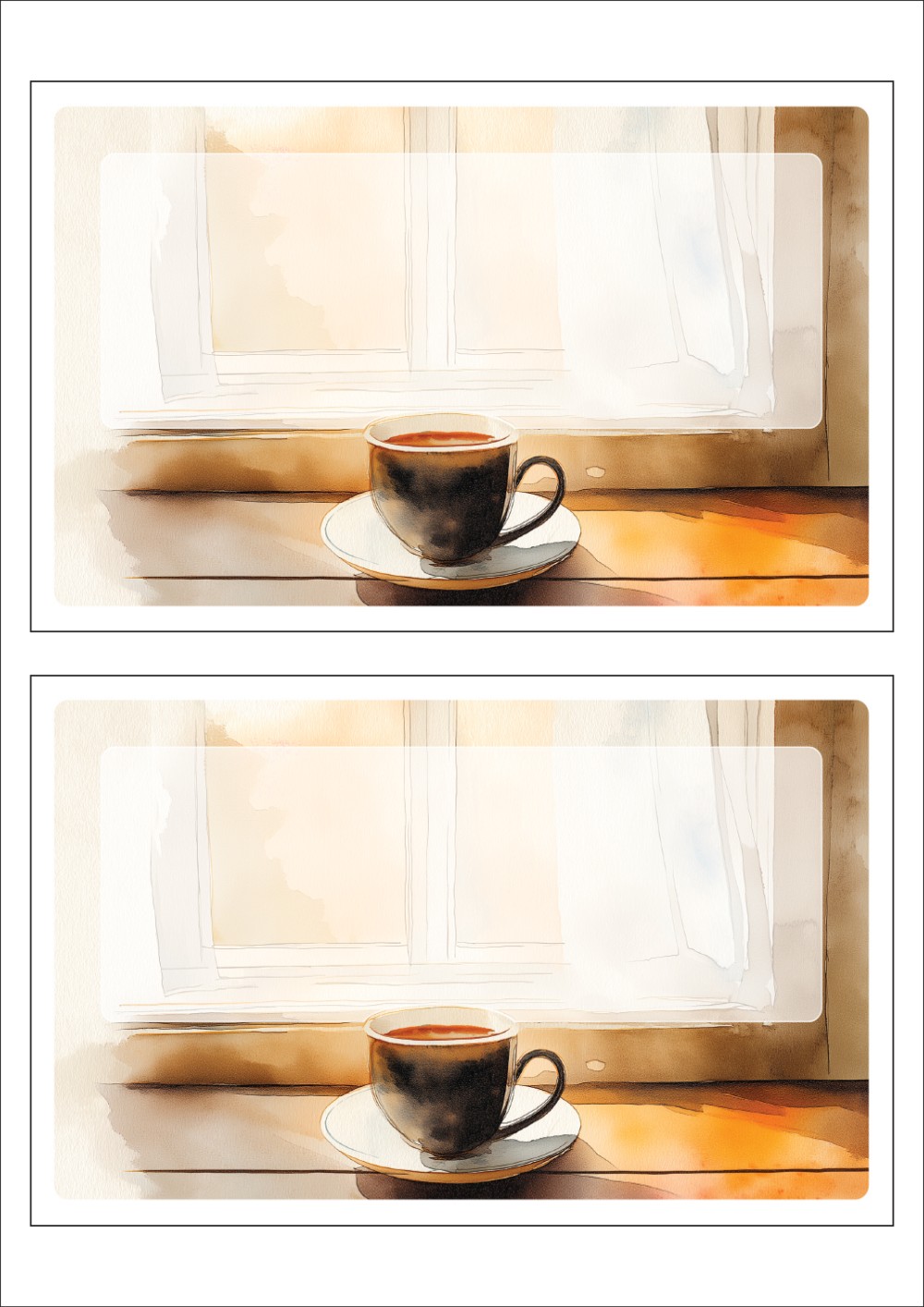 디자인된 A4 라벨지 출력용 라벨스티커, 규격코드: 812, 디자인코드: DA1424(따뜻한 차 한잔 하세요), 196 x 125 (mm)