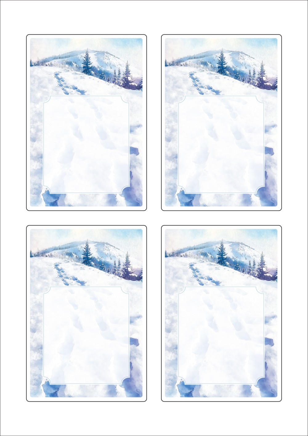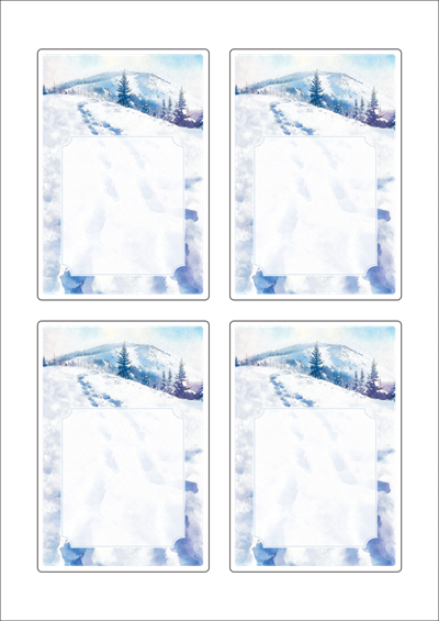 디자인된 A4 라벨지 출력용 라벨스티커, 규격코드: 822, 디자인코드: DA1491(겨울산에서 보내는 편지 2), 82 x 120 (mm)