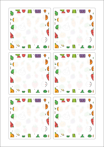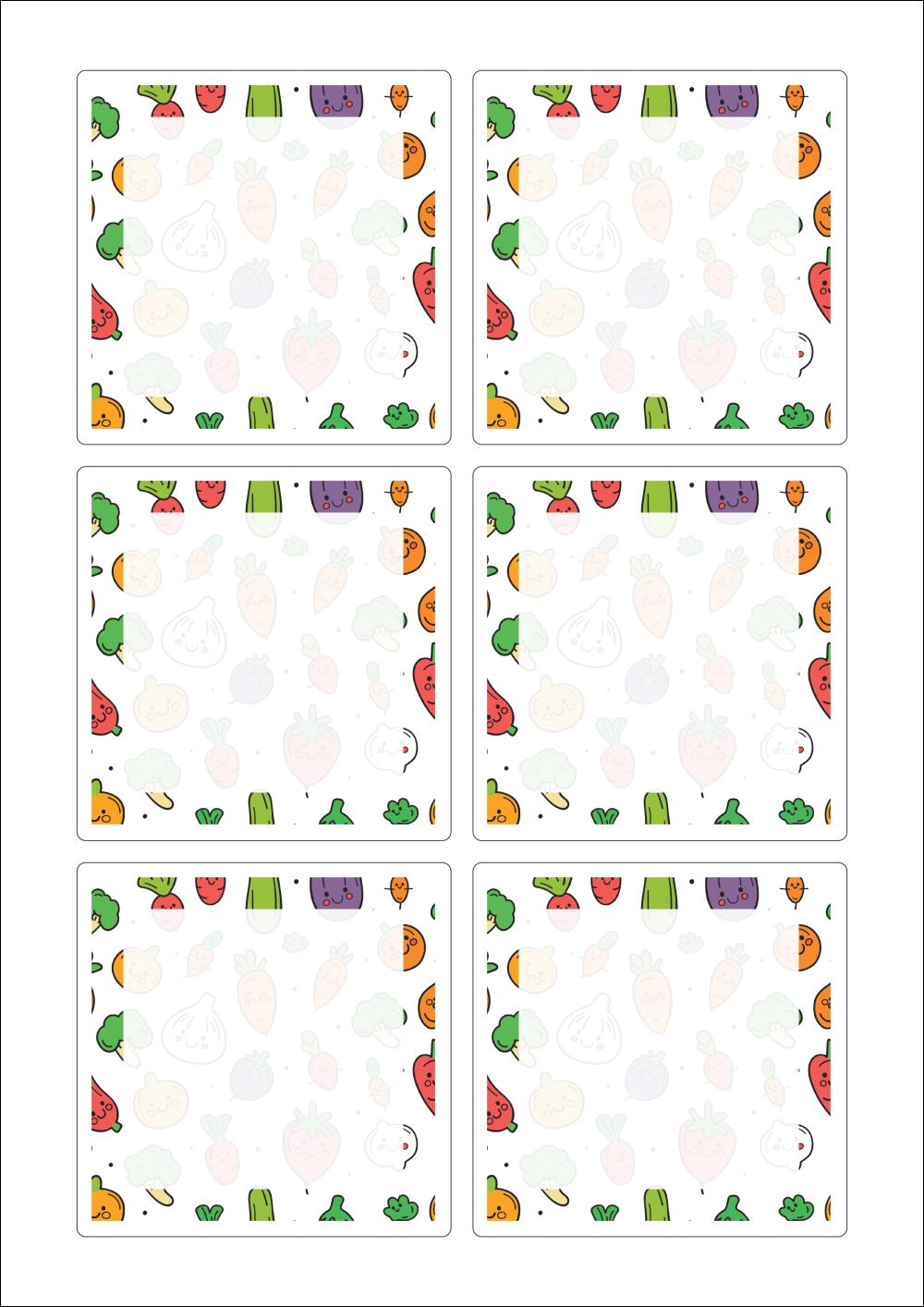 디자인된 A4 라벨지 출력용 라벨스티커, 규격코드: 823, 디자인코드: DA1376(건강한 야채 이야기), 85 x 85 (mm)