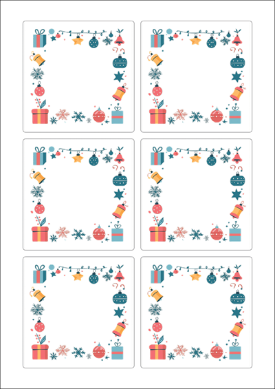 디자인된 A4 라벨지 출력용 라벨스티커, 규격코드: 823, 디자인코드: DA1458(크리스마스를 장식해요), 85 x 85 (mm)