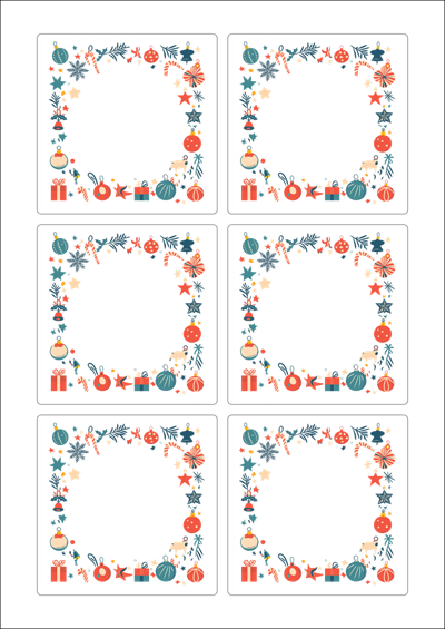 디자인된 A4 라벨지 출력용 라벨스티커, 규격코드: 823, 디자인코드: DA1459(크라스마스 메세지), 85 x 85 (mm)