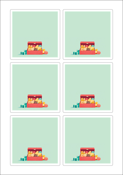 디자인된 A4 라벨지 출력용 라벨스티커, 규격코드: 823, 디자인코드: DA1478(크리스마스 아침에 선물을 받다.), 85 x 85 (mm)
