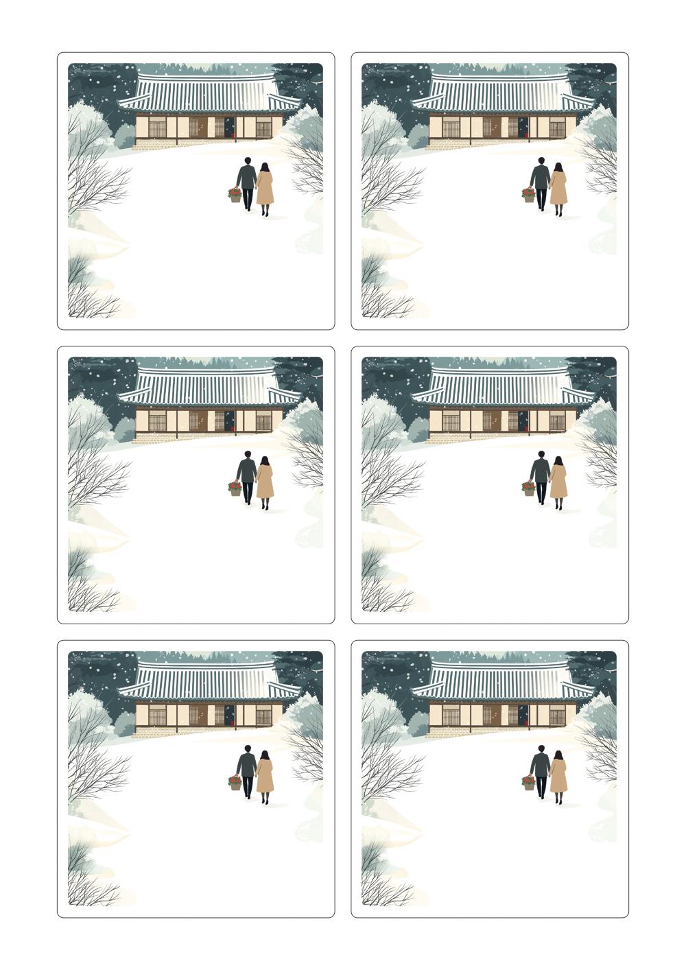디자인된 A4 라벨지 출력용 라벨스티커, 규격코드: 823, 디자인코드: DA1580(눈내린 귀향의 따뜻한 길), 85 x 85 (mm)