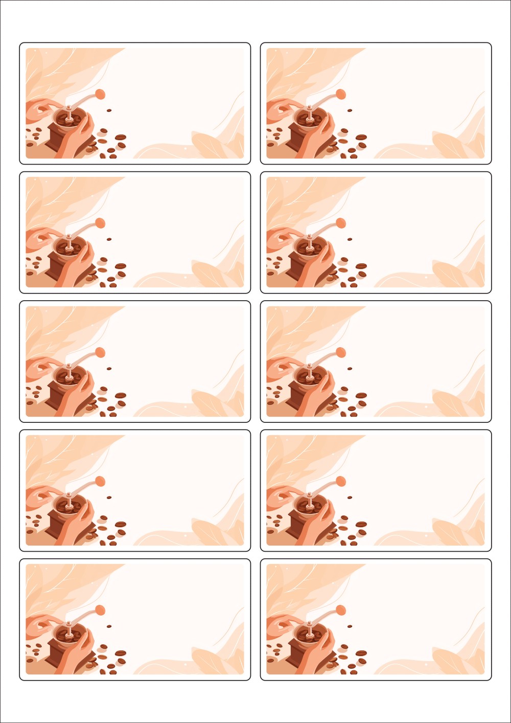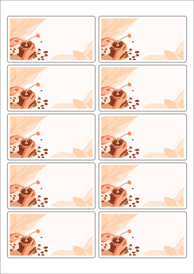 디자인된 A4 라벨지 출력용 라벨스티커, 규격코드: 825, 디자인코드: DA1411(향긋한 커피타임), 95 x 50 (mm)