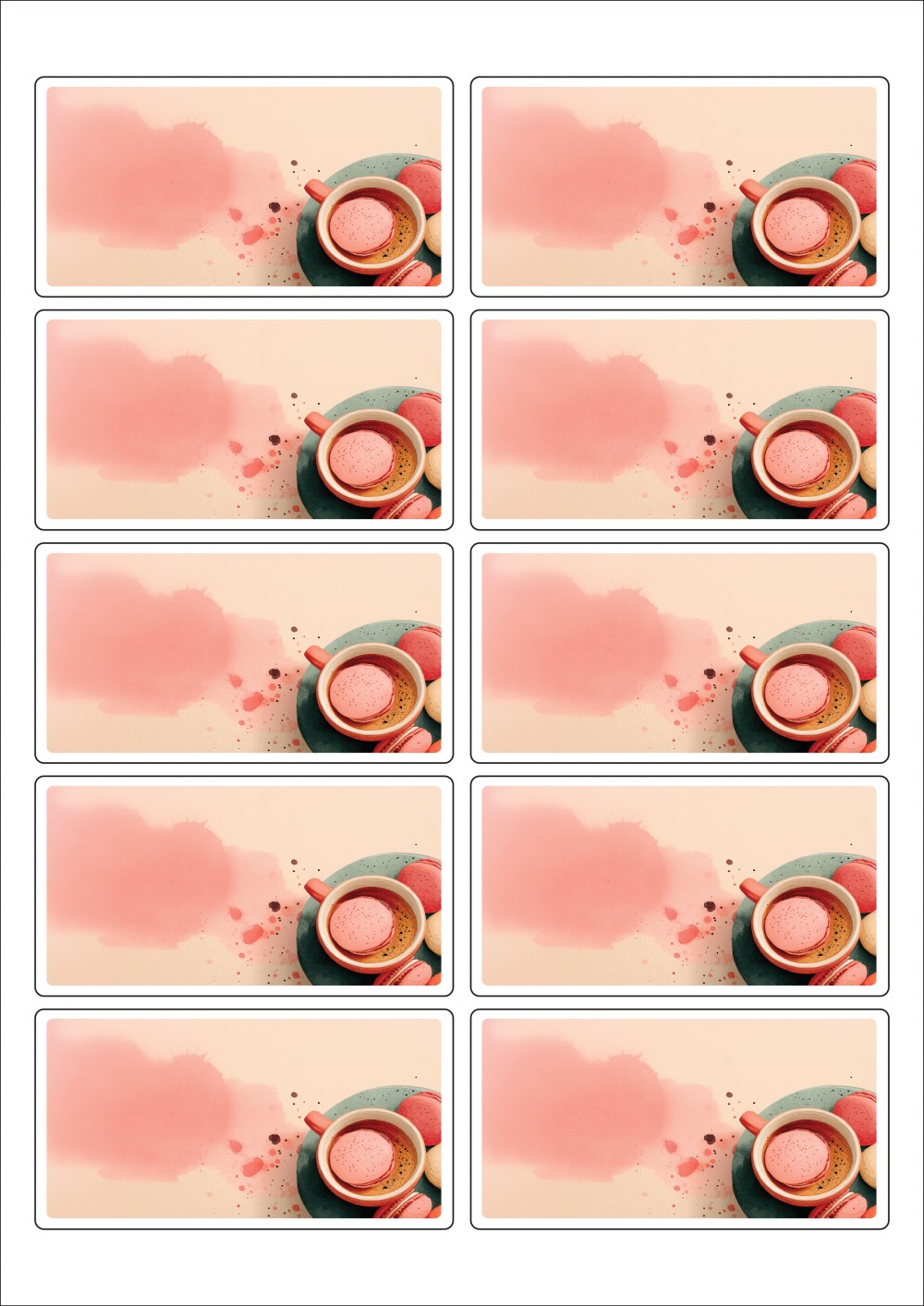 디자인된 A4 라벨지 출력용 라벨스티커, 규격코드: 825, 디자인코드: DA1444(마카롱 휴식타임), 95 x 50 (mm)