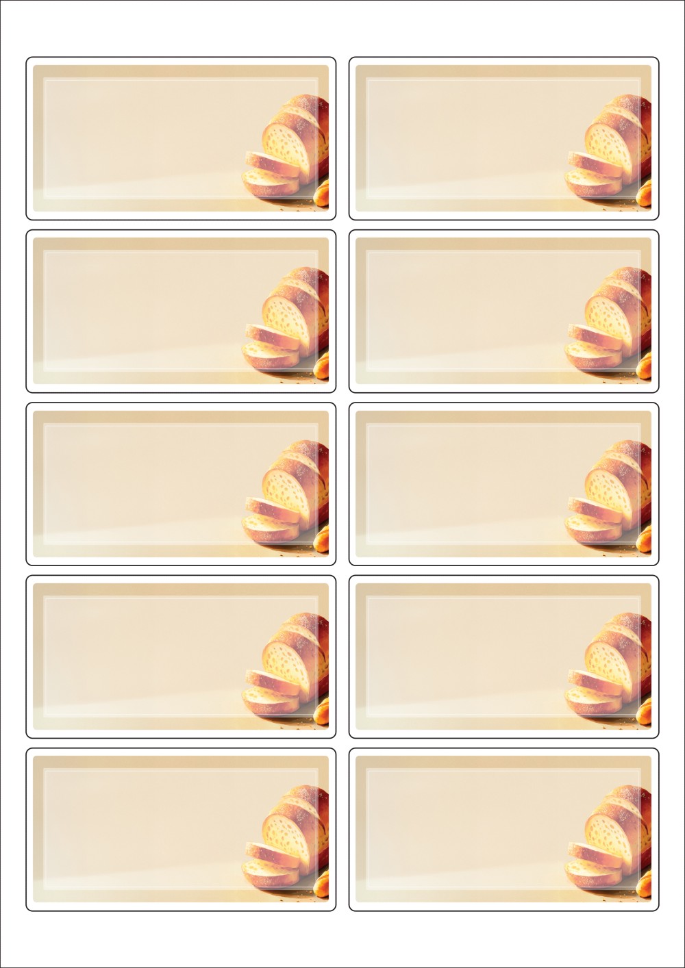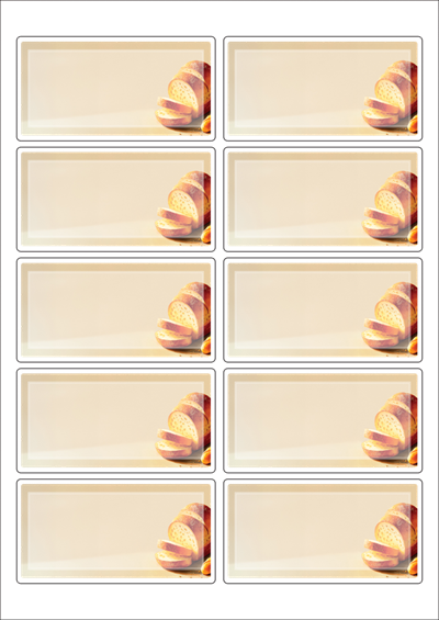 디자인된 A4 라벨지 출력용 라벨스티커, 규격코드: 825, 디자인코드: DA1450(맛있는 베이커리), 95 x 50 (mm)