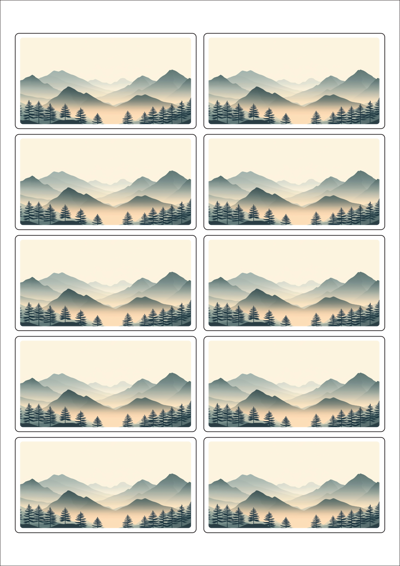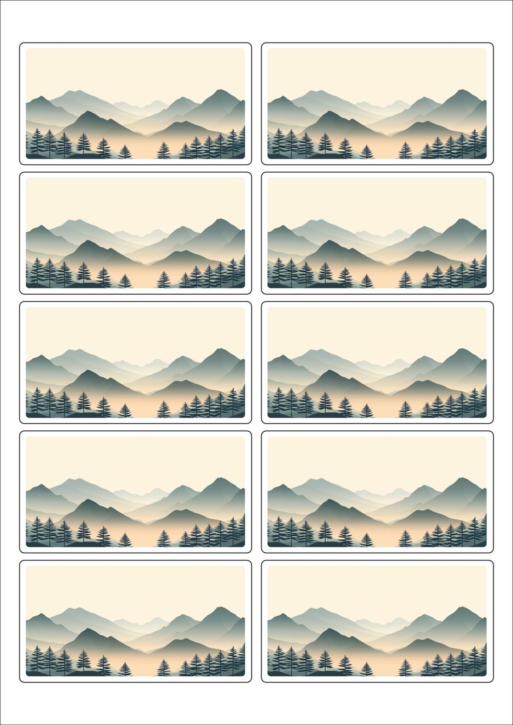 디자인된 A4 라벨지 출력용 라벨스티커, 규격코드: 825, 디자인코드: DA1572(고요한 아침의 숲), 95 x 50 (mm)