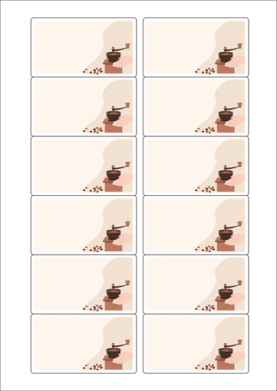 디자인된 A4 라벨지 출력용 라벨스티커, 규격코드: 826, 디자인코드: DA1412(감사의 커피한잔), 80 x 45 (mm)