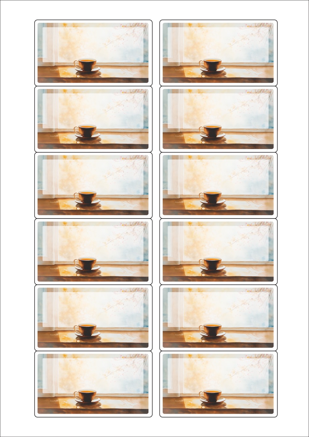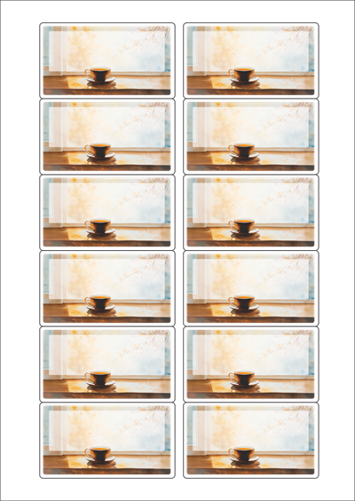 디자인된 A4 라벨지 출력용 라벨스티커, 규격코드: 826, 디자인코드: DA1425(가을날의 카페 창가에서), 80 x 45 (mm)