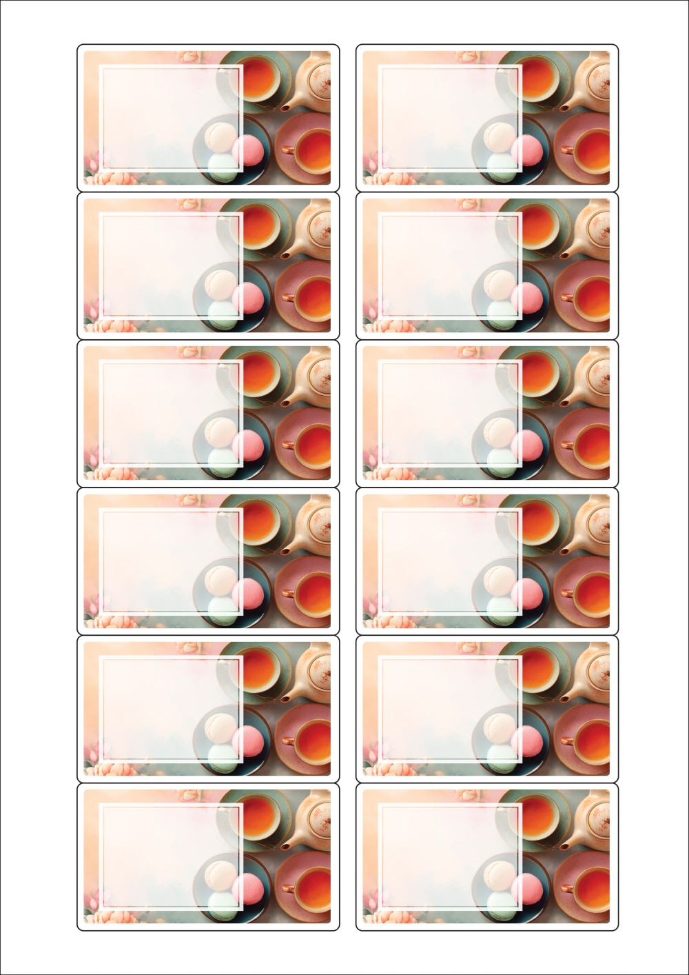 디자인된 A4 라벨지 출력용 라벨스티커, 규격코드: 826, 디자인코드: DA1431(향긋한 아침에), 80 x 45 (mm)