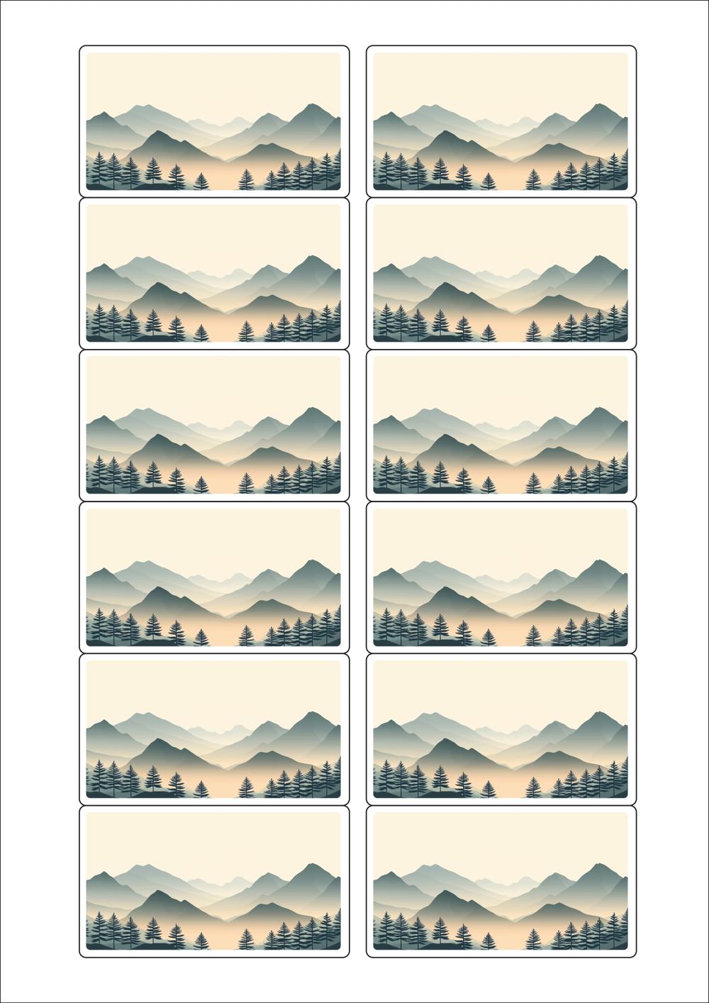 디자인된 A4 라벨지 출력용 라벨스티커, 규격코드: 826, 디자인코드: DA1572(고요한 아침의 숲), 80 x 45 (mm)
