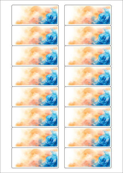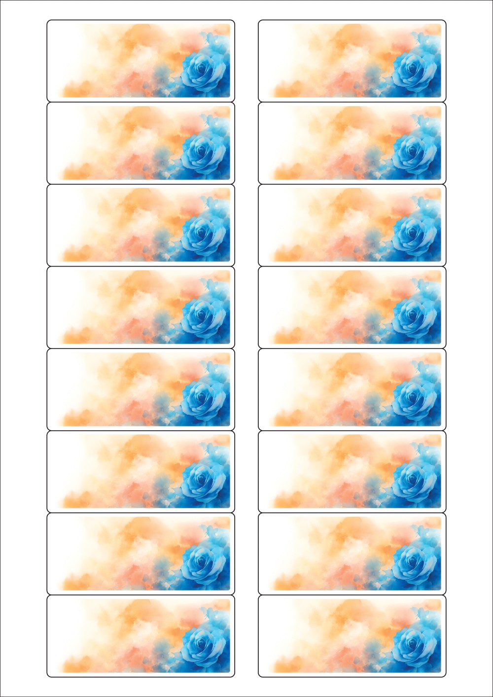 디자인된 A4 라벨지 출력용 라벨스티커, 규격코드: 828, 디자인코드: DA1410(감사의 파란 장미), 80 x 35 (mm)