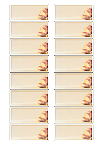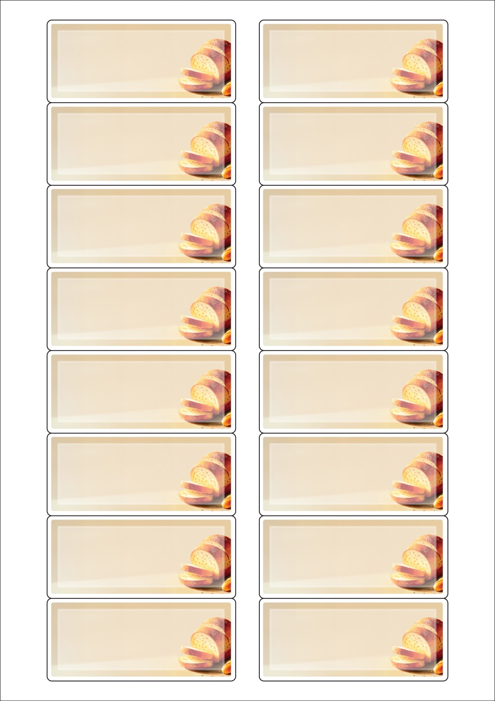 디자인된 A4 라벨지 출력용 라벨스티커, 규격코드: 828, 디자인코드: DA1450(맛있는 베이커리), 80 x 35 (mm)
