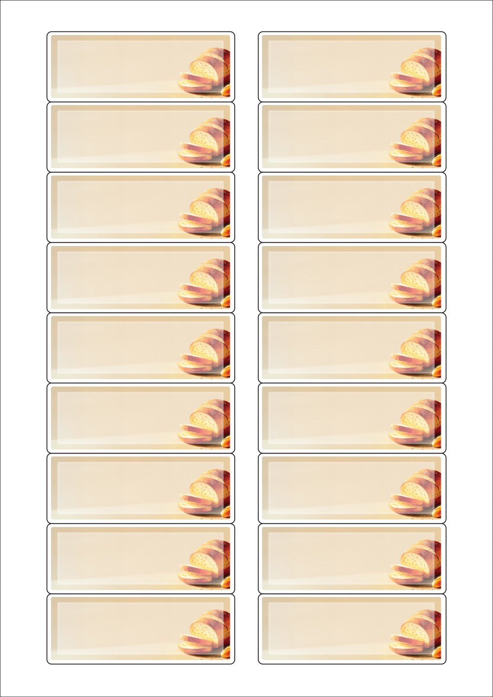 디자인된 A4 라벨지 출력용 라벨스티커, 규격코드: 829, 디자인코드: DA1450(맛있는 베이커리), 80 x 29.94 (mm)