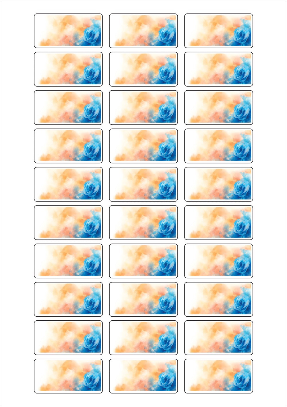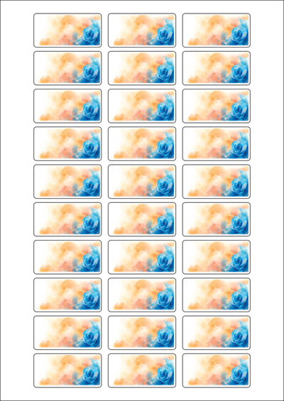 디자인된 A4 라벨지 출력용 라벨스티커, 규격코드: 830, 디자인코드: DA1410(감사의 파란 장미), 50 x 25 (mm)