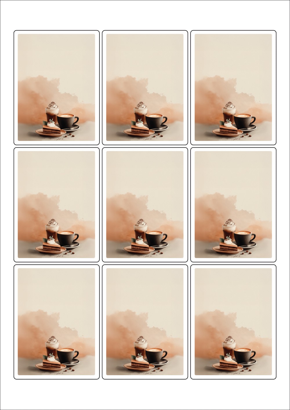 디자인된 A4 라벨지 출력용 라벨스티커, 규격코드: 833, 디자인코드: DA1446(따뜻함과 같이 있는 소중한 시간), 62 x 83 (mm)