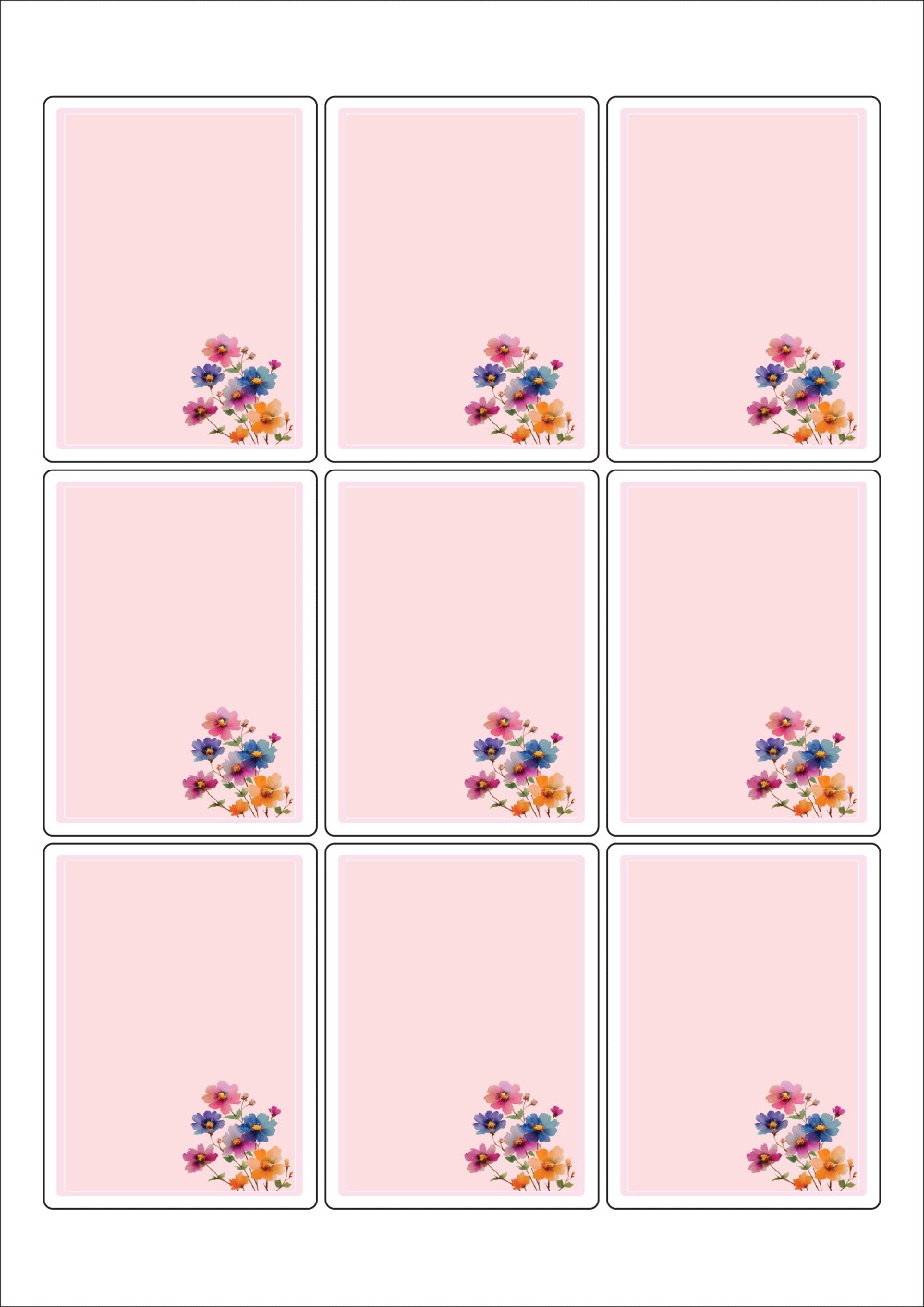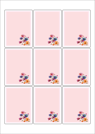 디자인된 A4 라벨지 출력용 라벨스티커, 규격코드: 833, 디자인코드: DA1451(꽃편지), 62 x 83 (mm)