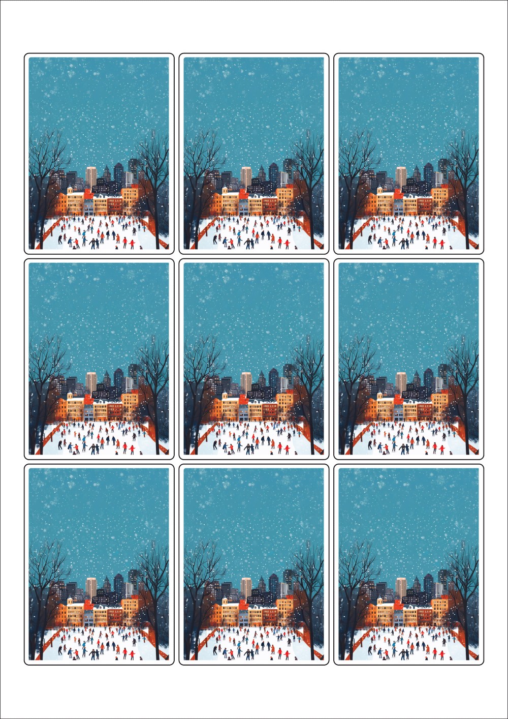 디자인된 A4 라벨지 출력용 라벨스티커, 규격코드: 833, 디자인코드: DA1471(겨울날의 즐거움), 62 x 83 (mm)