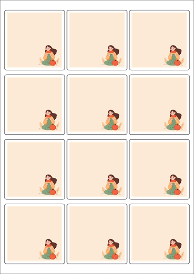 디자인된 A4 라벨지 출력용 라벨스티커, 규격코드: 834, 디자인코드: DA1369(나눔의 소중한 마음), 65 x 65 (mm)