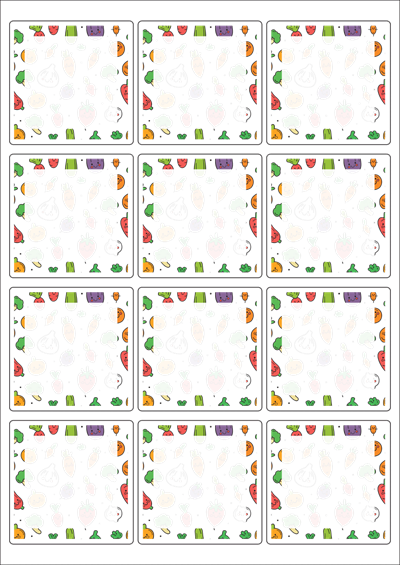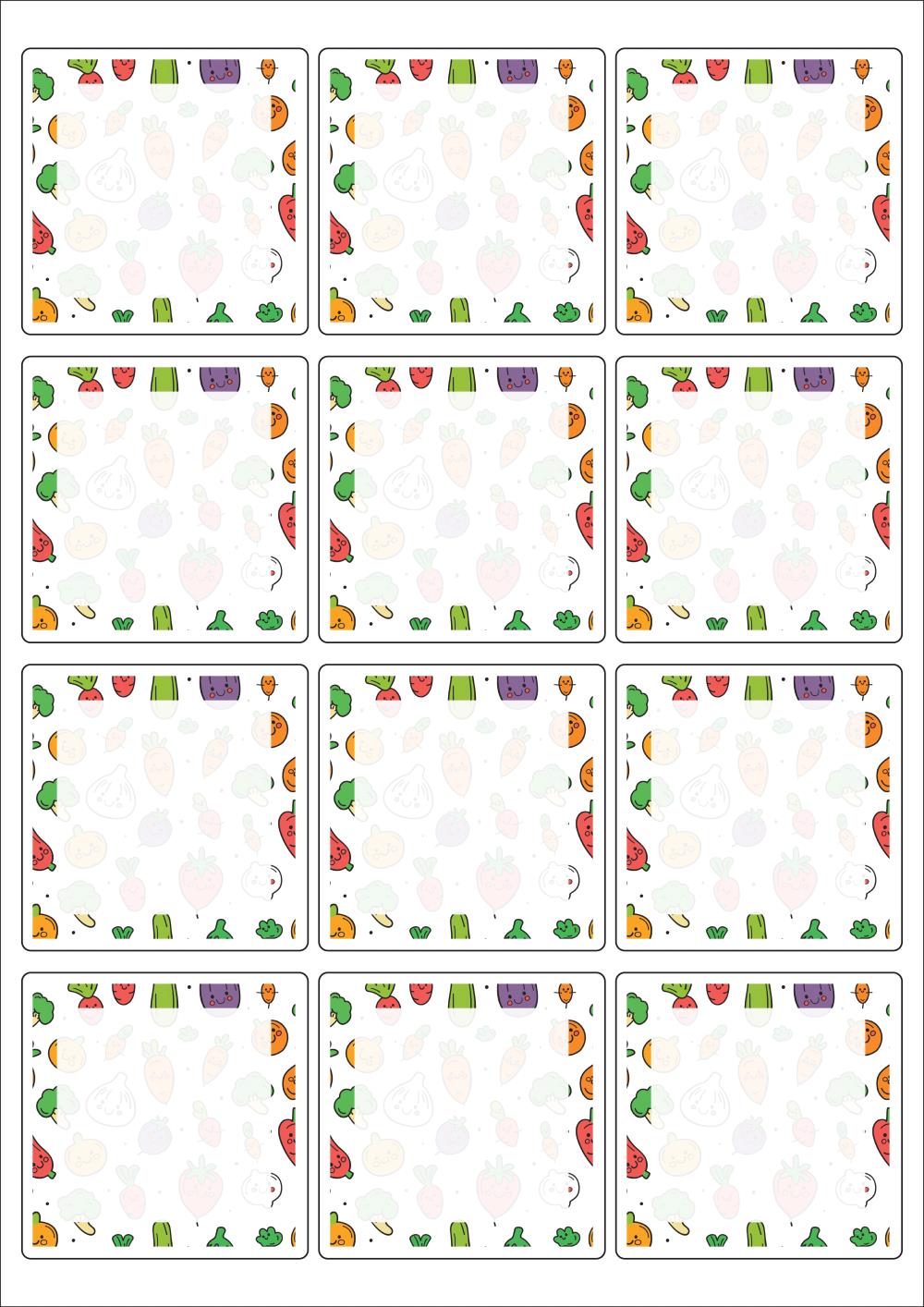 디자인된 A4 라벨지 출력용 라벨스티커, 규격코드: 834, 디자인코드: DA1376(건강한 야채 이야기), 65 x 65 (mm)