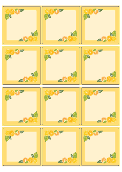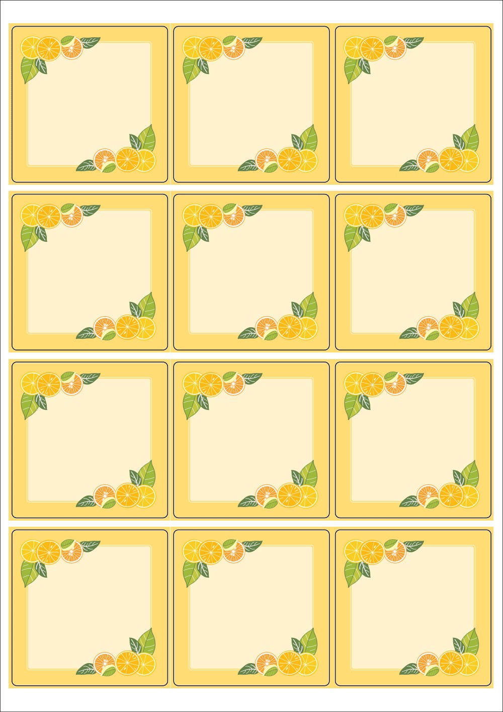 디자인된 A4 라벨지 출력용 라벨스티커, 규격코드: 834, 디자인코드: DA1417(상큼한 레몬 메세지), 65 x 65 (mm)