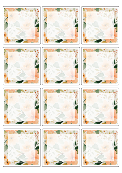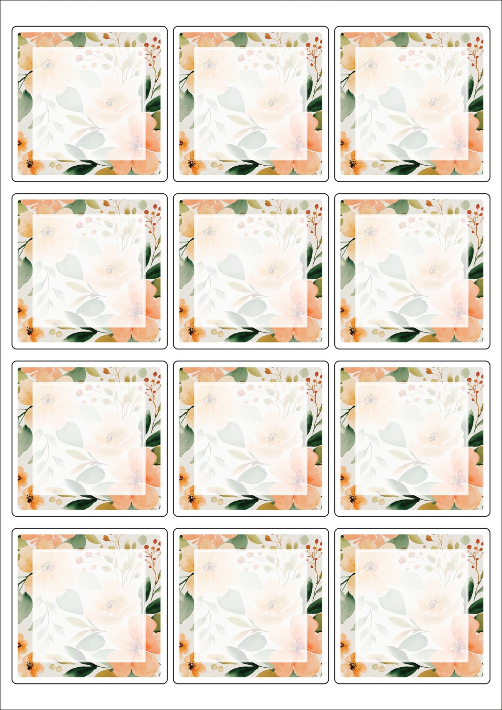 디자인된 A4 라벨지 출력용 라벨스티커, 규격코드: 834, 디자인코드: DA1420(꽃무늬 포장지1), 65 x 65 (mm)