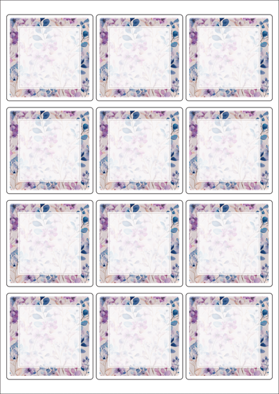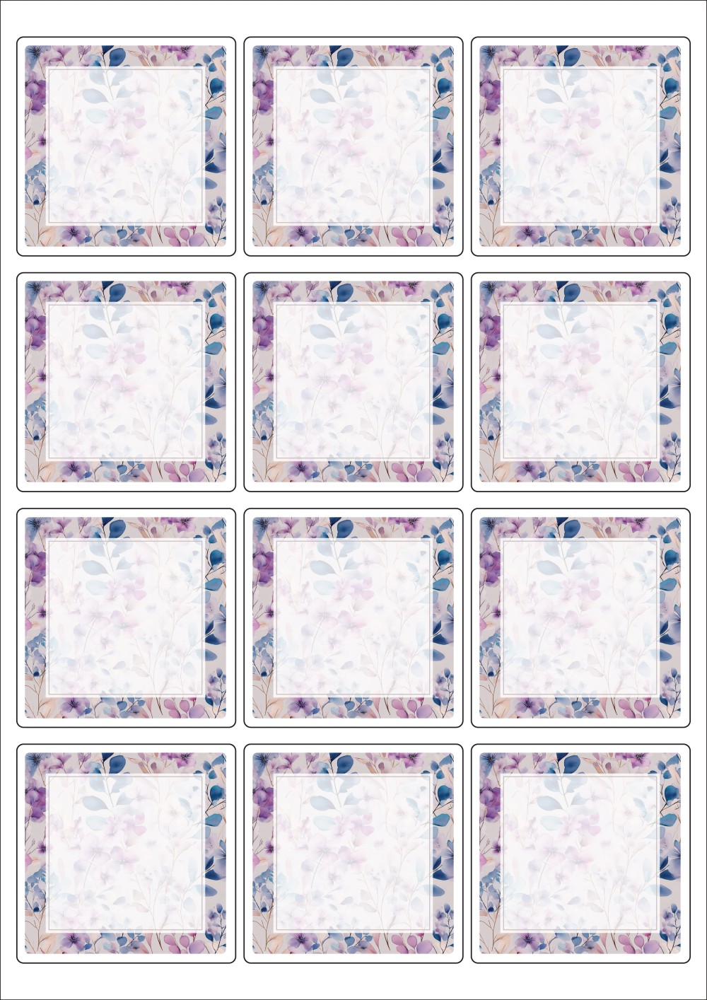 디자인된 A4 라벨지 출력용 라벨스티커, 규격코드: 834, 디자인코드: DA1421(꽃무늬 포장지2), 65 x 65 (mm)