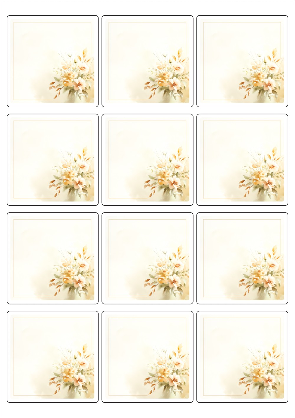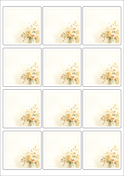 디자인된 A4 라벨지 출력용 라벨스티커, 규격코드: 834, 디자인코드: DA1422(감사의 메세지), 65 x 65 (mm)