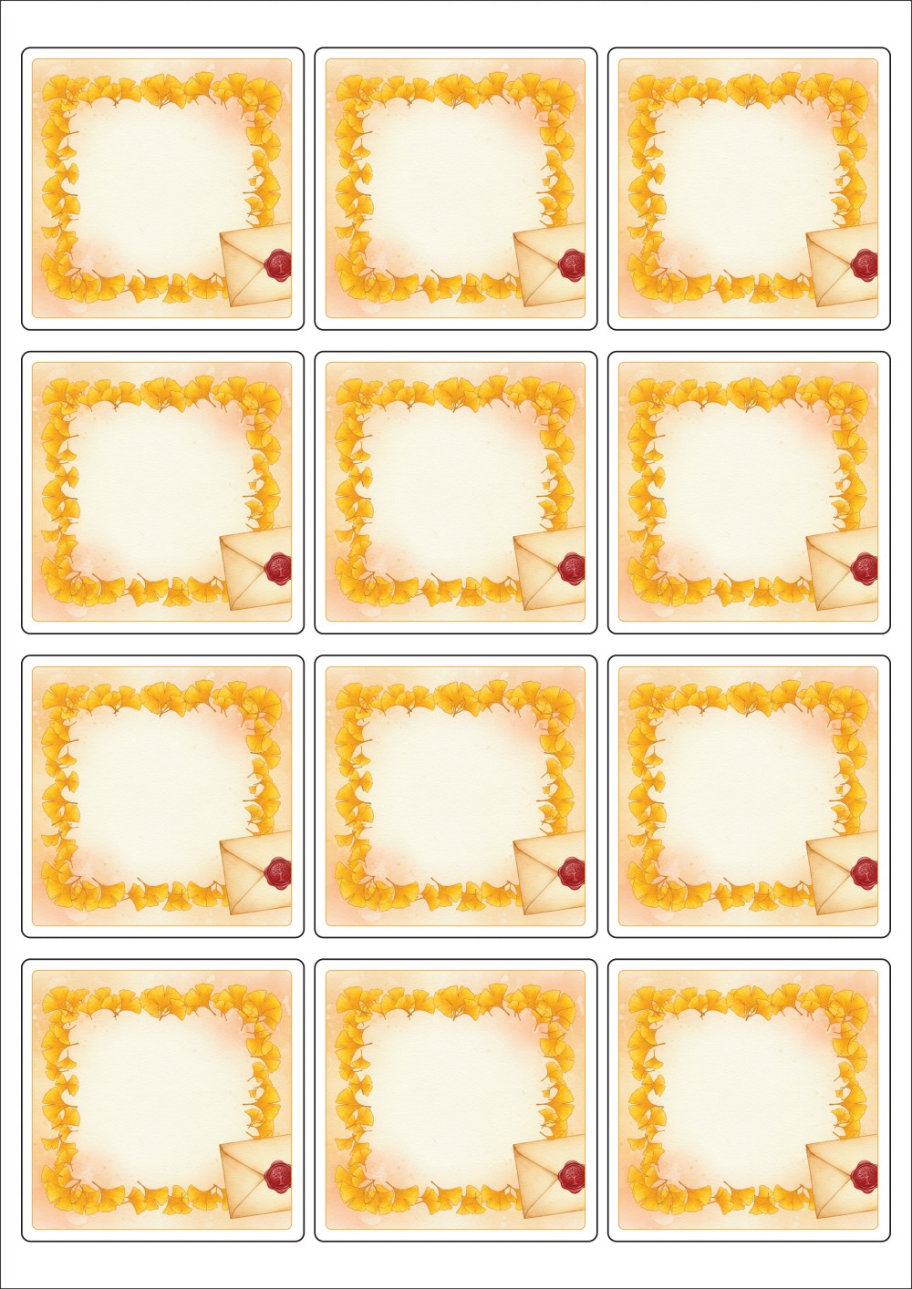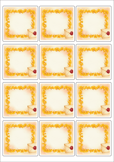 디자인된 A4 라벨지 출력용 라벨스티커, 규격코드: 834, 디자인코드: DA1426(은행잎 편지), 65 x 65 (mm)