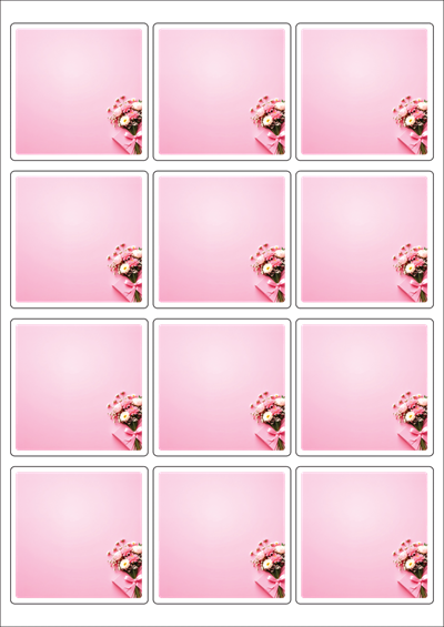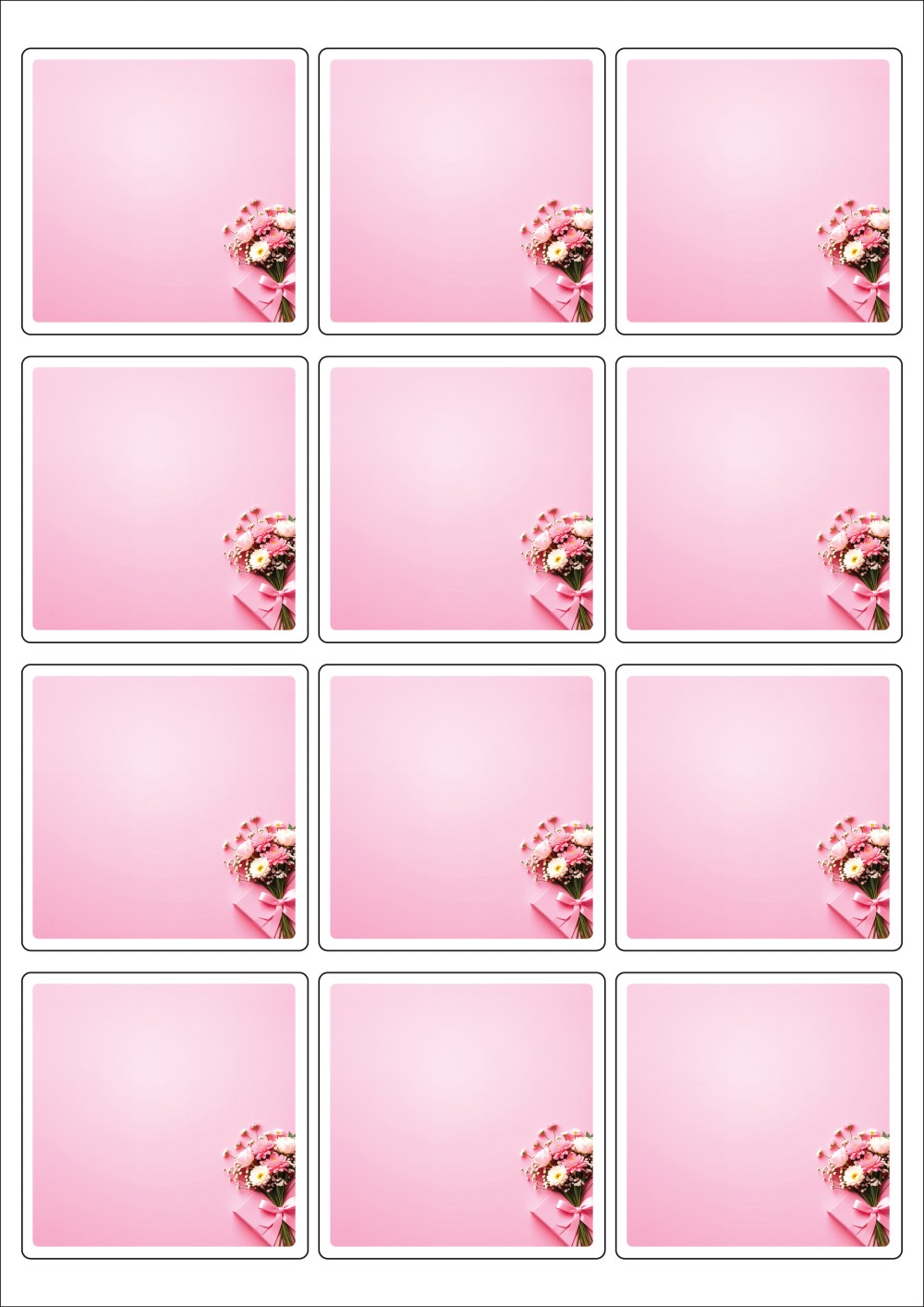 디자인된 A4 라벨지 출력용 라벨스티커, 규격코드: 834, 디자인코드: DA1427(축하메세지. 핑크!), 65 x 65 (mm)