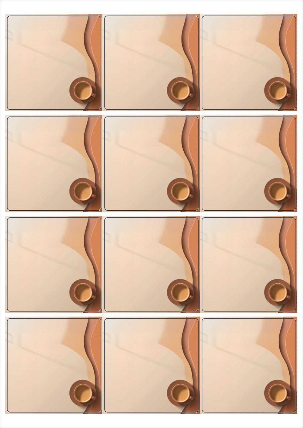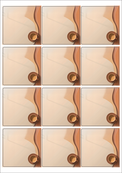디자인된 A4 라벨지 출력용 라벨스티커, 규격코드: 834, 디자인코드: DA1441(커피가 있는 모던 카페), 65 x 65 (mm)