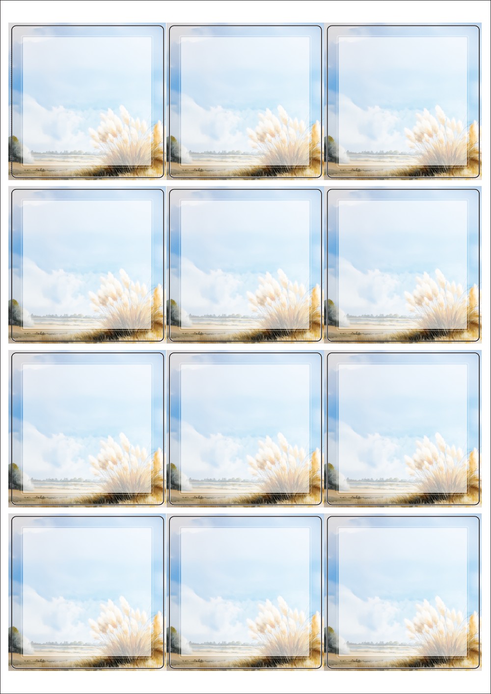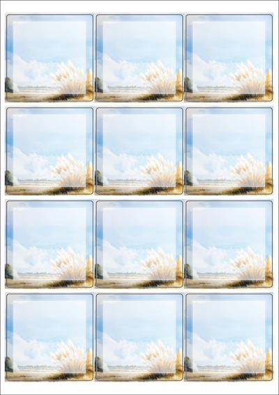 디자인된 A4 라벨지 출력용 라벨스티커, 규격코드: 834, 디자인코드: DA1448(가을 여행 1), 65 x 65 (mm)