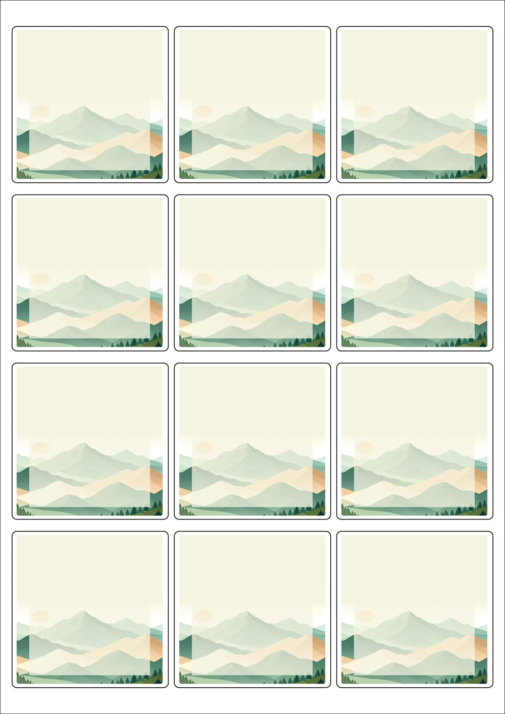 디자인된 A4 라벨지 출력용 라벨스티커, 규격코드: 834, 디자인코드: DA1566(자연의 물결2), 65 x 65 (mm)