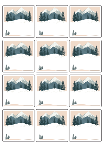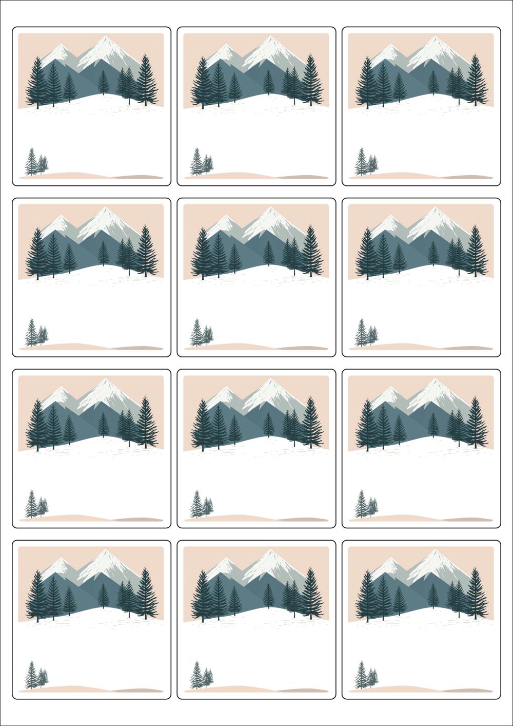 디자인된 A4 라벨지 출력용 라벨스티커, 규격코드: 834, 디자인코드: DA1582(저 잘지내요~ 겨울산에 인사), 65 x 65 (mm)