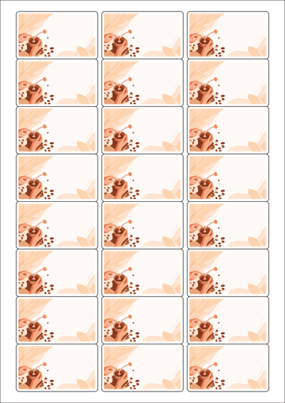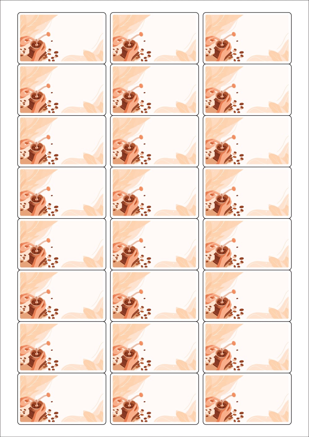 디자인된 A4 라벨지 출력용 라벨스티커, 규격코드: 835, 디자인코드: DA1411(향긋한 커피타임), 60 x 35 (mm)