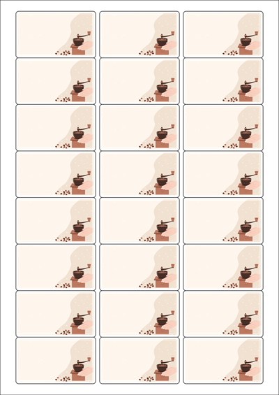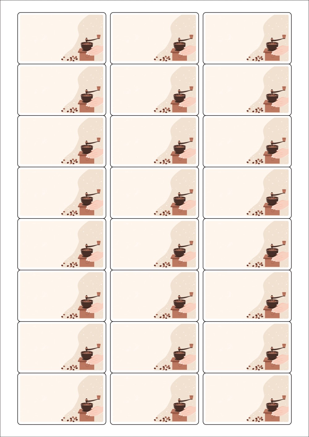 디자인된 A4 라벨지 출력용 라벨스티커, 규격코드: 835, 디자인코드: DA1412(감사의 커피한잔), 60 x 35 (mm)