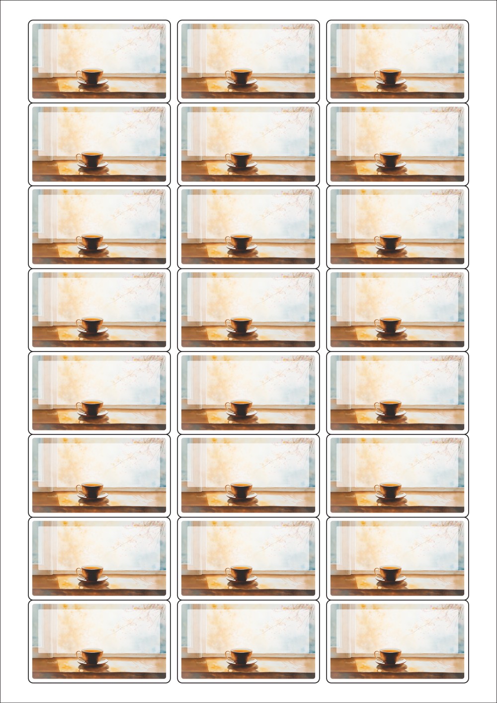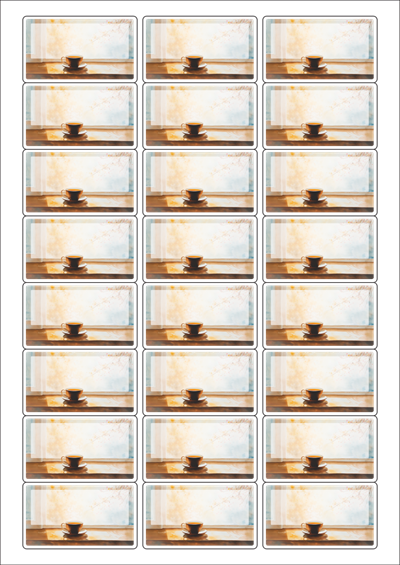 디자인된 A4 라벨지 출력용 라벨스티커, 규격코드: 835, 디자인코드: DA1425(가을날의 카페 창가에서), 60 x 35 (mm)