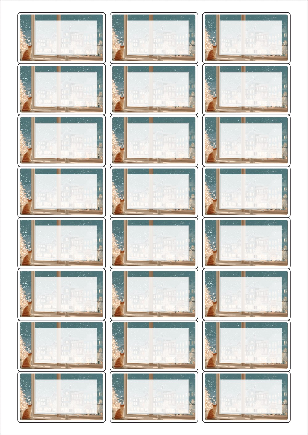디자인된 A4 라벨지 출력용 라벨스티커, 규격코드: 835, 디자인코드: DA1493(따뜻한 방안이 좋다냥~), 60 x 35 (mm)