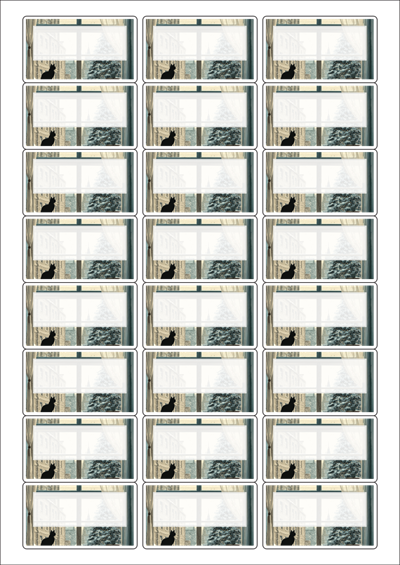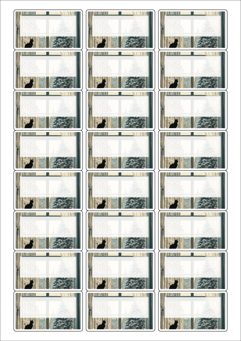 디자인된 A4 라벨지 출력용 라벨스티커, 규격코드: 835, 디자인코드: DA1494(오후엔 눈 그리고, 고양이), 60 x 35 (mm)