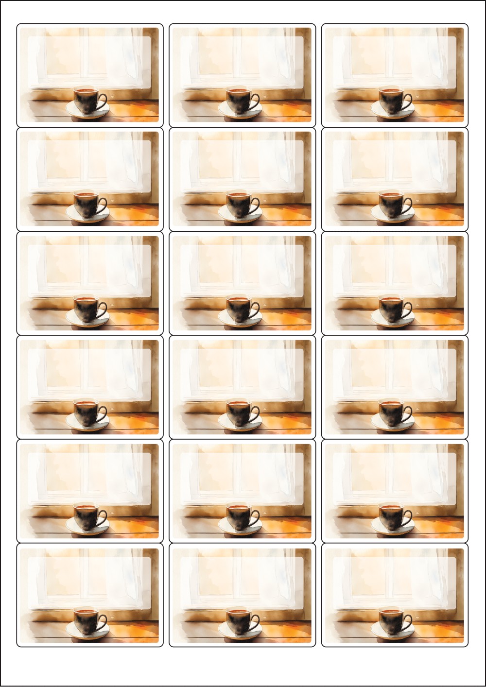 디자인된 A4 라벨지 출력용 라벨스티커, 규격코드: 836, 디자인코드: DA1424(따뜻한 차 한잔 하세요), 63.5 x 45 (mm)