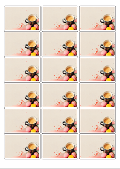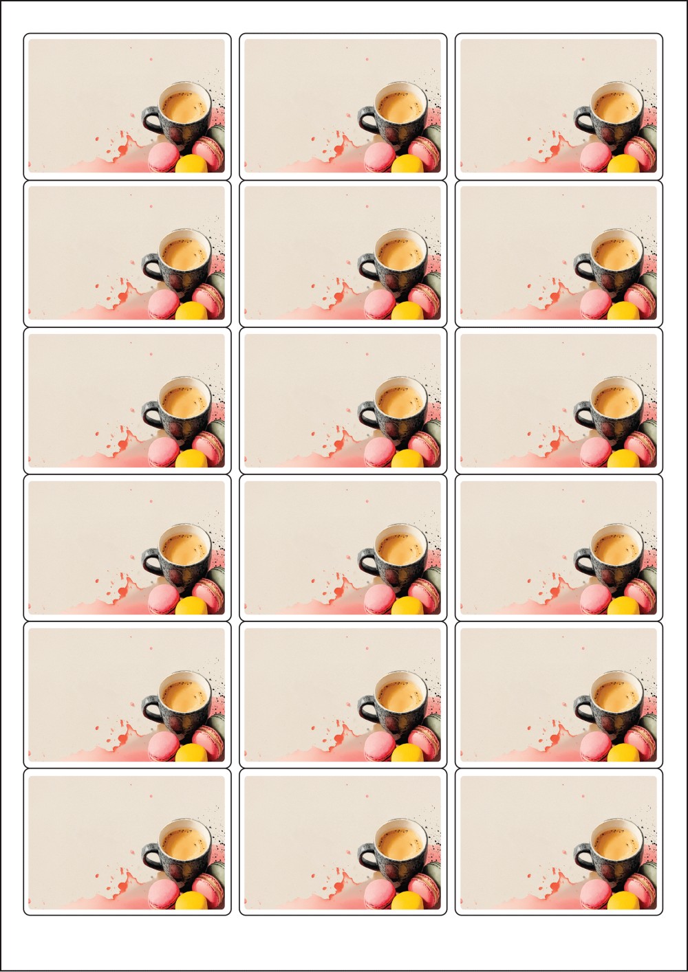 디자인된 A4 라벨지 출력용 라벨스티커, 규격코드: 836, 디자인코드: DA1445(차와 함께하는 즐거운 힐링타임), 63.5 x 45 (mm)