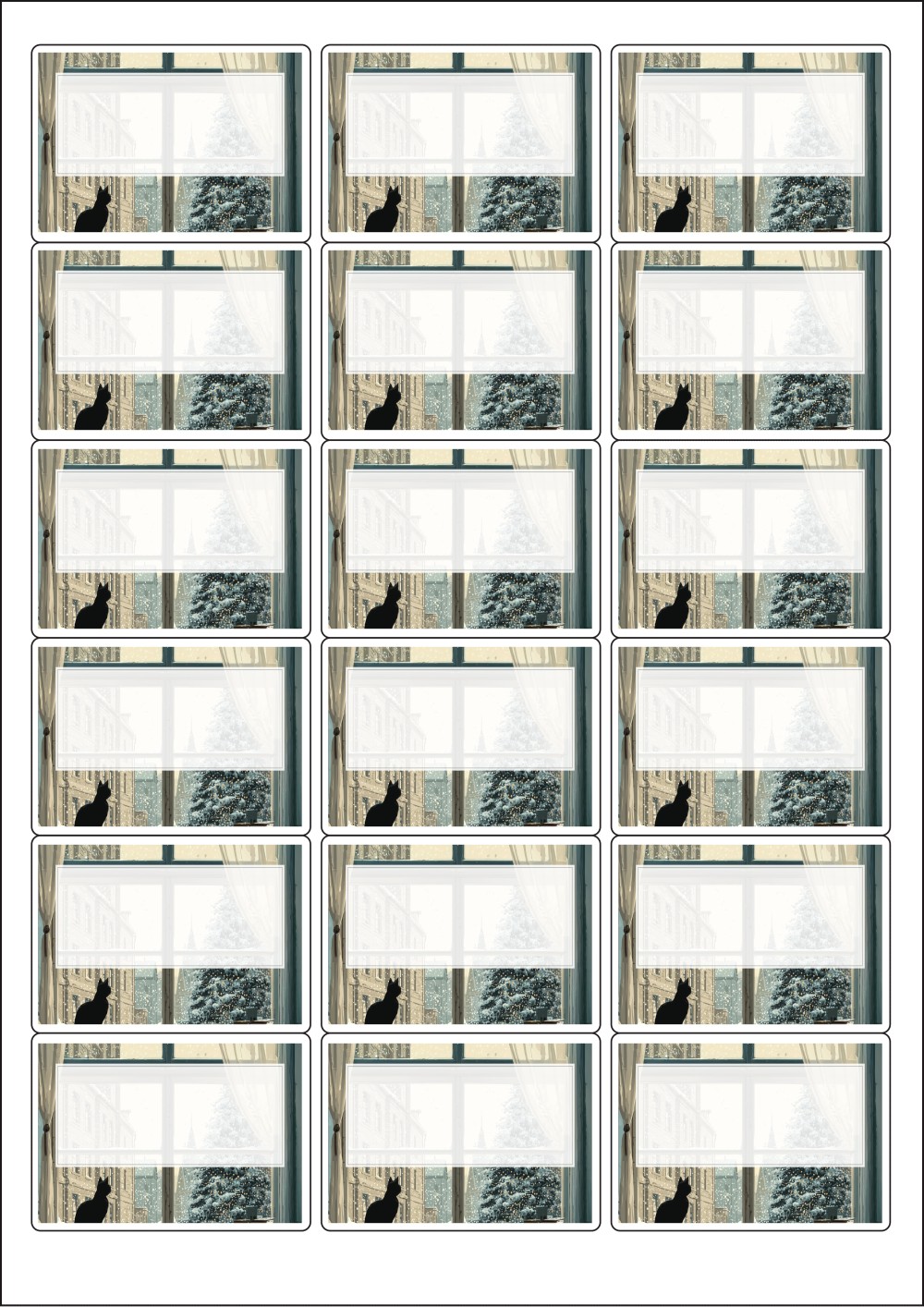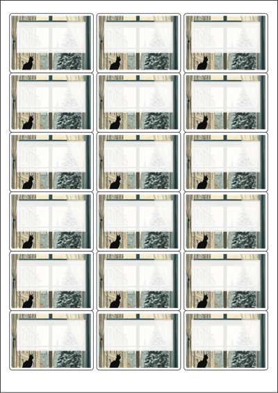 디자인된 A4 라벨지 출력용 라벨스티커, 규격코드: 836, 디자인코드: DA1494(오후엔 눈 그리고, 고양이), 63.5 x 45 (mm)