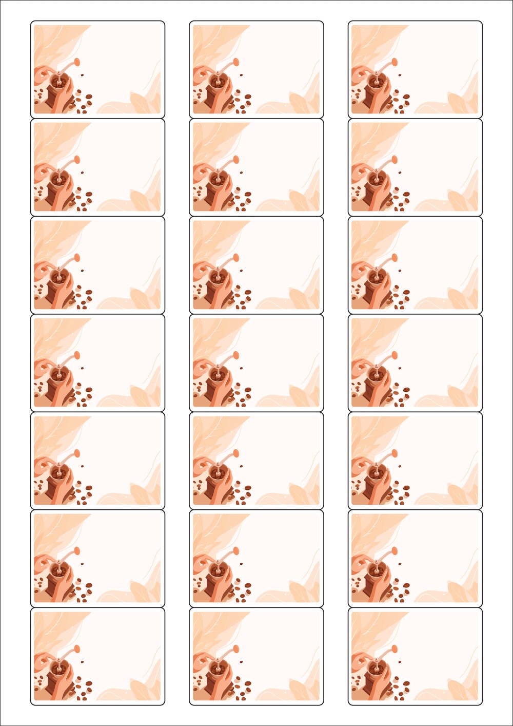디자인된 A4 라벨지 출력용 라벨스티커, 규격코드: 837, 디자인코드: DA1411(향긋한 커피타임), 55 x 40 (mm)