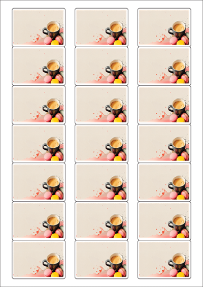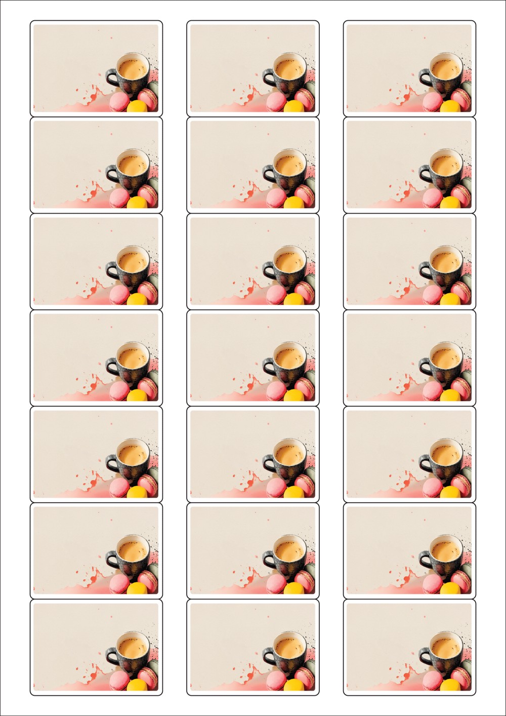 디자인된 A4 라벨지 출력용 라벨스티커, 규격코드: 837, 디자인코드: DA1445(차와 함께하는 즐거운 힐링타임), 55 x 40 (mm)